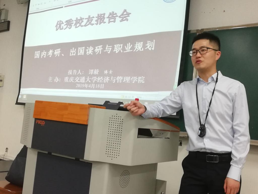 在会上,谭毅学长分享了自己在国外读书的经历,重点提到了自己被录取为博士生的时候,他深感自己的幸运,但幸运背后却是他早早就酝酿好的底气。在大学四年里,他考过了全国和重庆的Visual Basic计算机二级,一直保持着对编程设计的喜爱,作为一个非计算机专业的人写代码写到废寝忘食……他的运气配得上他的努力,让他成功拿到了博士学位,荣耀回国。“任何事情都要学会提前去准备,多充实自己,等到机会来临时,才不会扼腕叹息。”