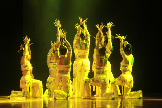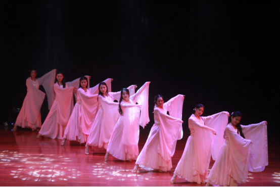 “有美一人,清扬婉兮,邂逅相遇,适我愿兮。”洛神女们摇曳着曼妙的舞姿,将青年男女不期而遇,相互倾心的欢喜表现得淋漓尽致。绝美的舞台配上耀眼的五彩灯光,娉娉袅袅的舞姿配着沁人心脾的音乐,让人感受到一丝丝温柔与美,观众渐入迷离唯美的佳人梦境,似陶醉其中,为洛神女们精彩绝伦的表演欢呼鼓掌。