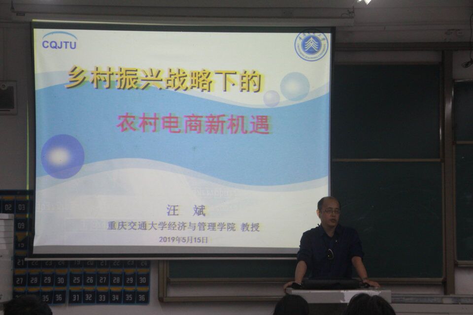 5月15日晚7:00-8:30,汪斌教授在公司双福校区教学楼A01 116教室开展了主题为“乡村振兴战略下的农村电商新机遇“的电子商务讲学,suncitygroup太阳新城的同学们有幸聆听了此次讲座。