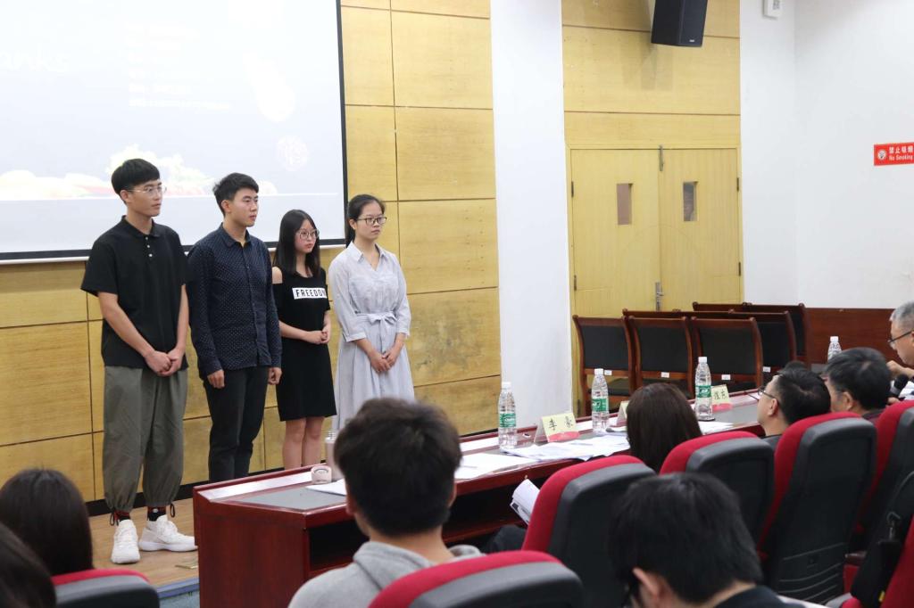选拔赛上,每支参赛队伍派出一名介绍人简洁清楚地在五分钟内通过PPT对自己队伍的项目进行介绍,而后三至五分钟的时间则是五位评委对项目提出相应的问题与建议,全队成员进行答辩。评委们对每一个项目都悉心指导,他们提出的宝贵建议对方案后期的改善具有极为重要的作用。