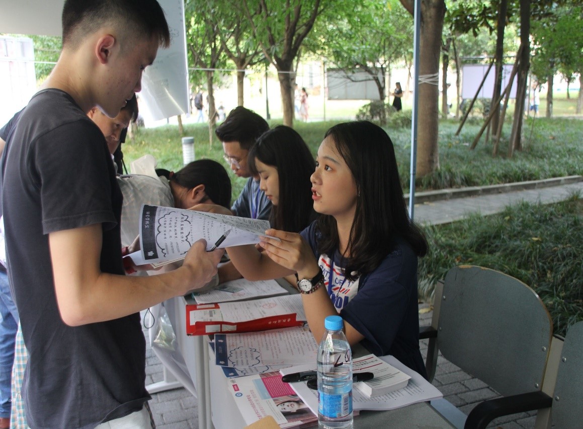 志愿者正在为新生讲解相关事宜