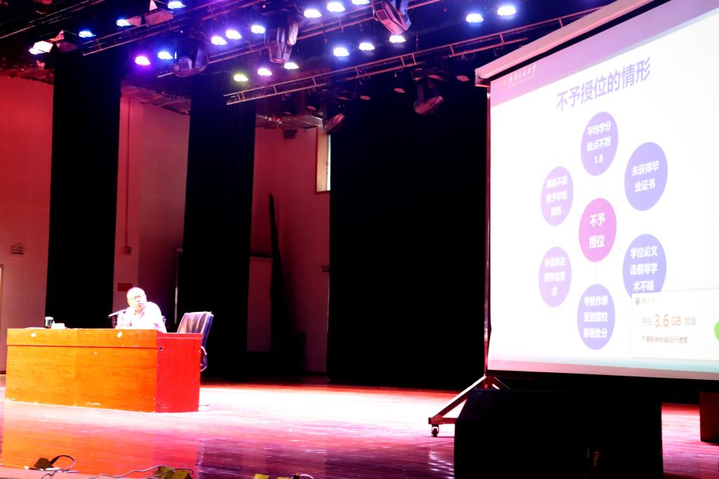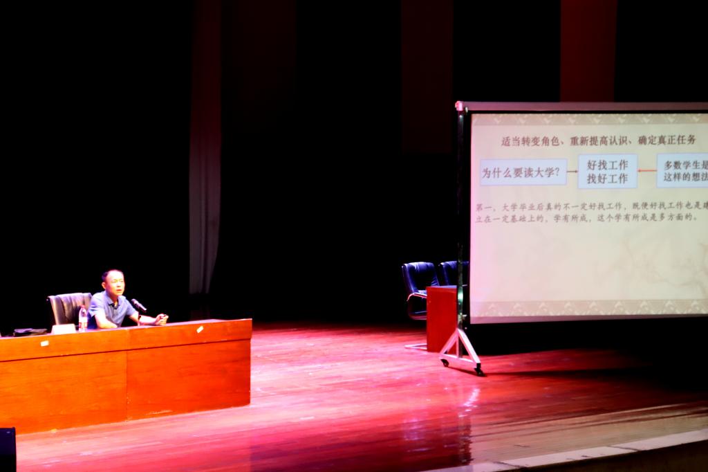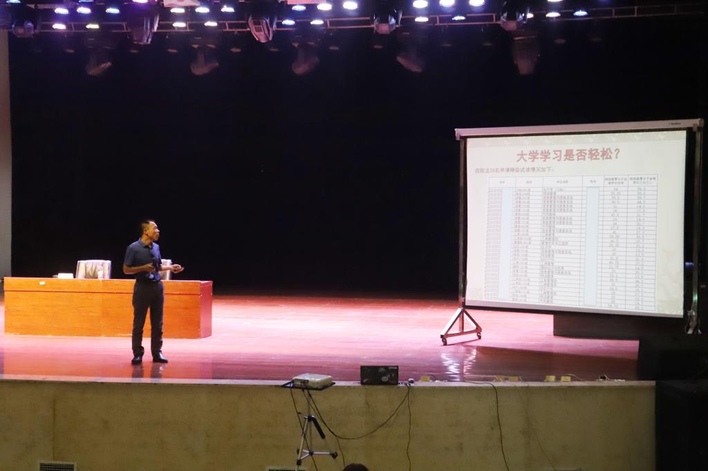 随后,张庆民副书记从解读社会、家长员工群体对大学的误解开始,向新生讲述真正的老员工活。“重新认识,正视现实,加足马力,迎接挑战。”张庆民副书记这样讲道,他向新生们展示了高年级员工申请降级试读情况表,借此警惕经管学子。“降级后学分仍未达到不合格学分三分之二的员工,我们会直接注销其学籍。大学学习谈不上很难,前提是你必须认真对待学习。”张副书记告诫经管学子万万不可自我松懈。