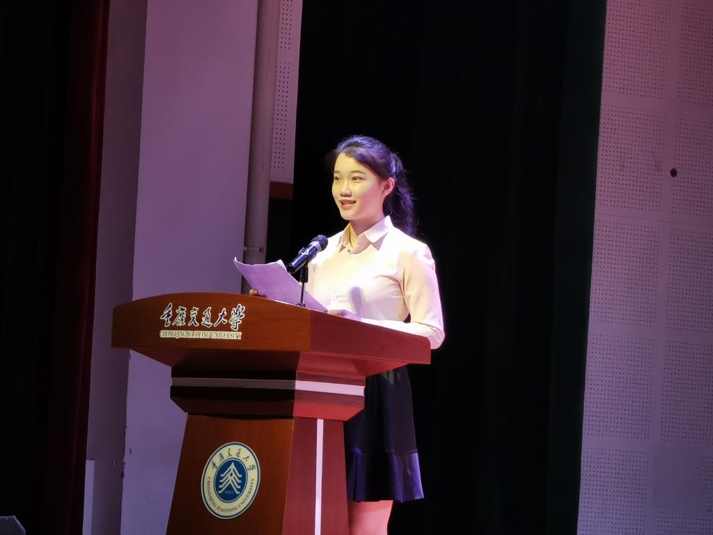 其后,2019级知识产权专业龚洲尼同学代表新生发言,她分享了自己初为交大学子的欣喜,并表达了自己不倦前行,勇于追梦的决心。“积极参与活动,体会感动,收获友谊,交大时光美妙非常。“龚洲尼于会后采访这样讲道。