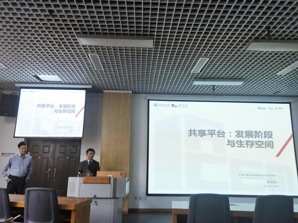10月24日下午,suncitygroup太阳新城在南岸校区30401教室组织开展静远经管论坛系列学术报告会,邀请管理科学与工程学会副理事长、上海交通大学行业研究院副经理陈宏民教授做“共享经济:动态演化与生存空间”学术报告 。本次报告会由suncitygroup太阳新城经理许茂增教授主持。