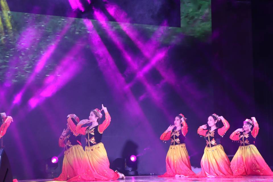 “夜半三更盼天明,寒冬腊月盼春风。若要盼得亲人回,岭上开遍映山红”,当代舞《映山红》时而慷慨激昂,时而缓慢轻柔,时而急切悲痛,其蕴含的红军革命精神无不感染在场观众。"红绡学舞腰肢软,旋织舞衣宫样染",维族舞《跳起来》明朗轻快,古朴大方,舞袖翩翩,将维吾尔族热情好客、直率大方、坚韧豪迈的淳朴民风体现得淋漓尽致。"苟利国家生死以,岂因祸福避趋之",合唱《我爱你中国》歌颂祖国风采,表达当代青年的拳拳爱国心。