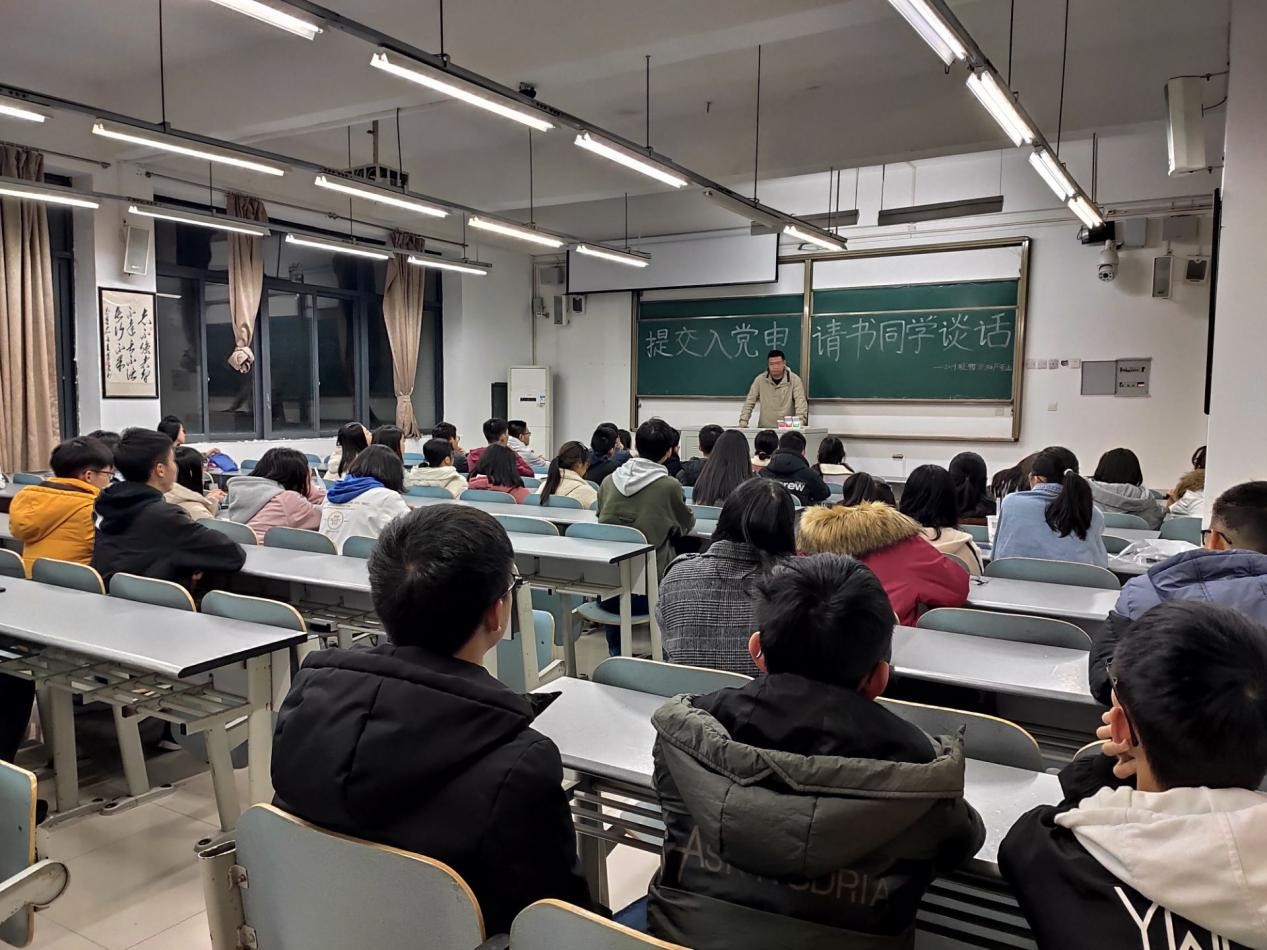 接着,张老师向同学们重点介绍习近平新时代中国特色社会主义思想。他强调,申请入党的同学应积极主动学习习近平新时代中国特色社会主义思想,加强理论学习与党性修养。