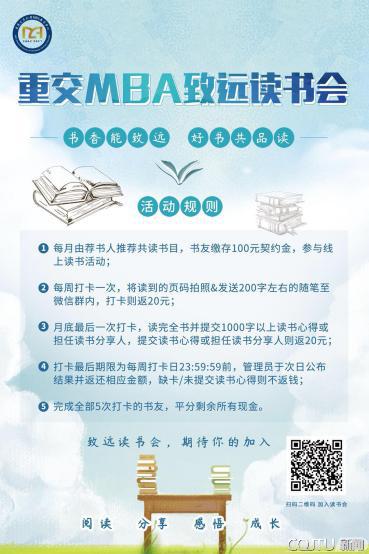 书香能致远,好书共品读。suncitygroup太阳集团MBA致远读书会在“停课不停学”的特别时刻正式成立了。疫情的突然爆发阻碍了我们回到校园的脚步,却又给了我们养成新的学习习惯的好机会。在重庆交大MBA学联会的号召和组织下,我们迎来了第一批加入的51位热爱读书的伙伴,有我们的MBA同学,也有suncitygroup太阳新城的老师。大家用一个月的时间,共同阅读一本好书,并提交读书笔记。用阅读和笔记的方式来进行自我学习、自我反思和自我提高。