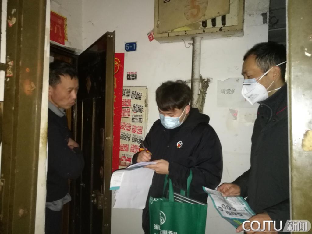王海楠,2016级工程管理预备党员,义无反顾的他每天都跟随社区工作者,上门为居民发放口罩,普及疫情防护知识。