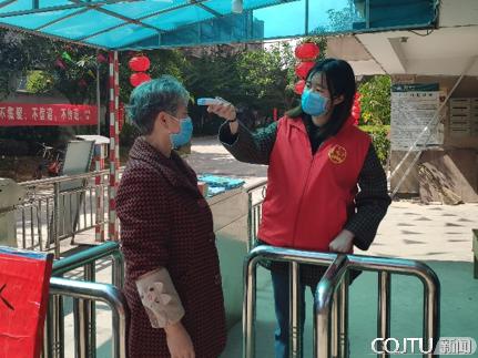 图为魏歆婷(右一)坚守体温检测岗位 |