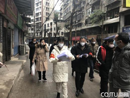 图为郝铭敏(白色衣服女生)在街道工作 |