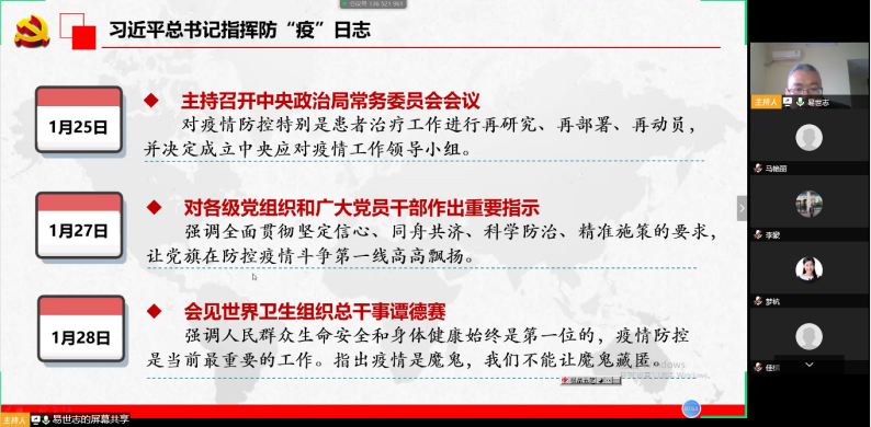 关心疫情,严守规则。全体党员纷纷表示疫情期间都及时关心和学习了中央、市委、市委教育工委疫情防控有关文件会议精神,以及公司工作总体安排,按照相关精神和要求开展工作,严格遵守各种规定。