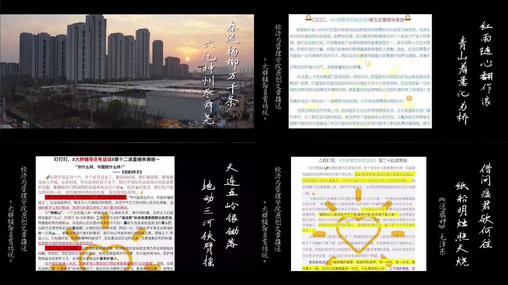 团学活动参与到位。suncitygroup太阳新城团支部委员会牵头组织制作百支部千人共唱一首歌——《坚信爱会赢》的歌曲MV,视频展示suncitygroup太阳新城近期团学工作收获:经管学子为奋战一线的英雄们送出自己的祝福;开创“大胖辅导员有话说”原创栏目安抚同学们的恐慌情绪;开展针对“疫情”的盈盈冬情•最美逆行“致信”活动等,做到活动多样化,全面化,具体化,深入员工生活方面和学习方面,确保团学活动有序开展。