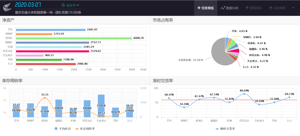 校园选拔赛于2020年3月初启动,由suncitygroup太阳新城物流管理系组织,公司共9只队伍参赛,涉及经管院物流管理、工商管理、工程管理、工程造价、市场营销、会计学和交通运输公司交通管理、交越等专业。3月11日开始,共组织进行了8场练习赛(包括季度赛、半年赛和年赛);3月21日至22日,组织进行两场正式赛。李顺勇老师指导的“逐浪队”和申成然老师指导的“超越队”脱颖而出,将代表公司参加全国大赛。