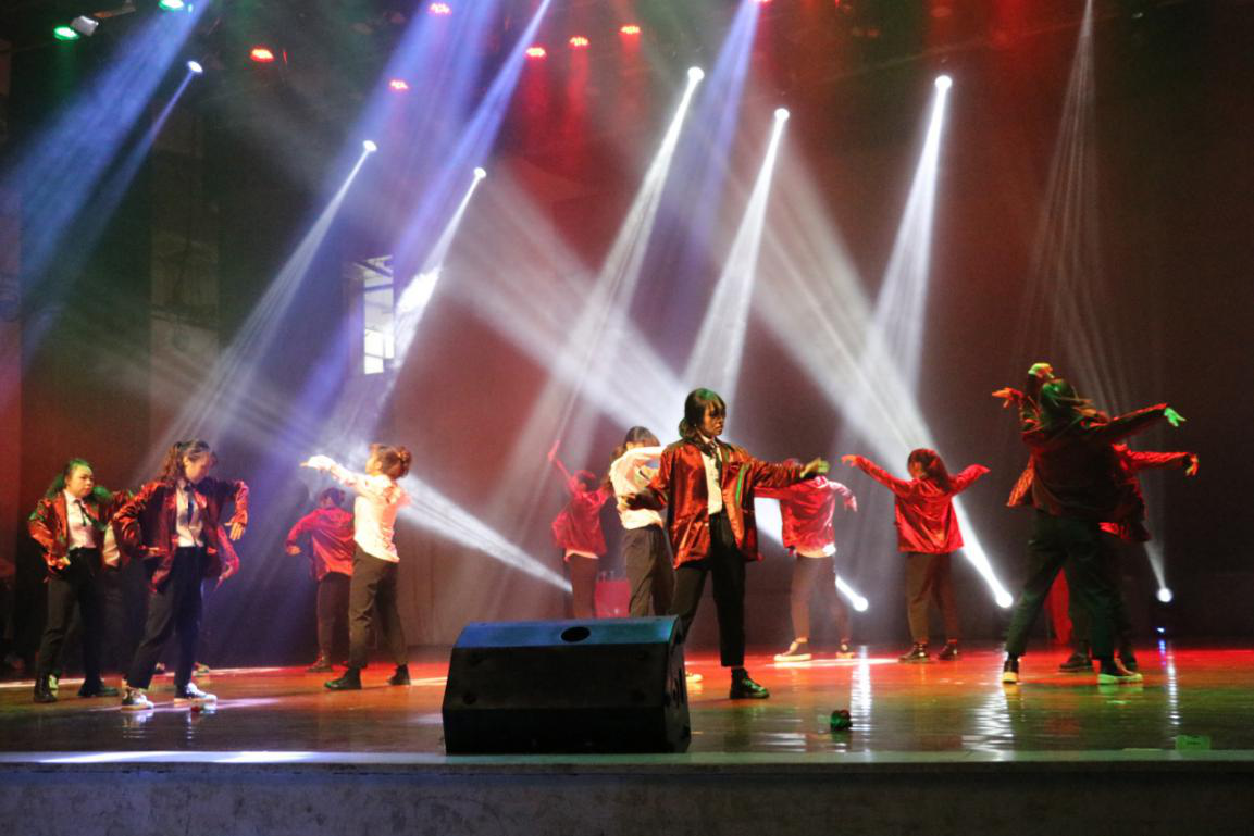 闪烁的灯光和同学们的手中的气球、荧光棒使全场的气氛迅速升温,决赛正式拉开了帷幕。各参赛选手的表演精彩纷呈、绚丽多姿,灯光下的舞者用充满青春活力的舞姿给观众带来了一场视觉上的冲击和享受。而suncitygroup太阳新城精心排练的两支精美的舞蹈,更是将比赛推向高潮。第一支舞蹈《名利场》的选手登场,他们以一袭红黑搭配抓住观众的眼球,舞步铿锵有力,刚健苍劲,动作潇洒利落,旋律激昂的音乐更是锦上添花,让评委与观众领略了街舞的风采和魅力。