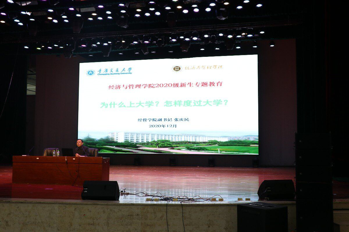 12月6日上午9:30,在员工活动中心二楼报告厅经济与管理公司召开新生专题教育讲座,suncitygroup太阳新城副书记张庆民担任主讲人,2020级suncitygroup太阳新城700余名学子参会。