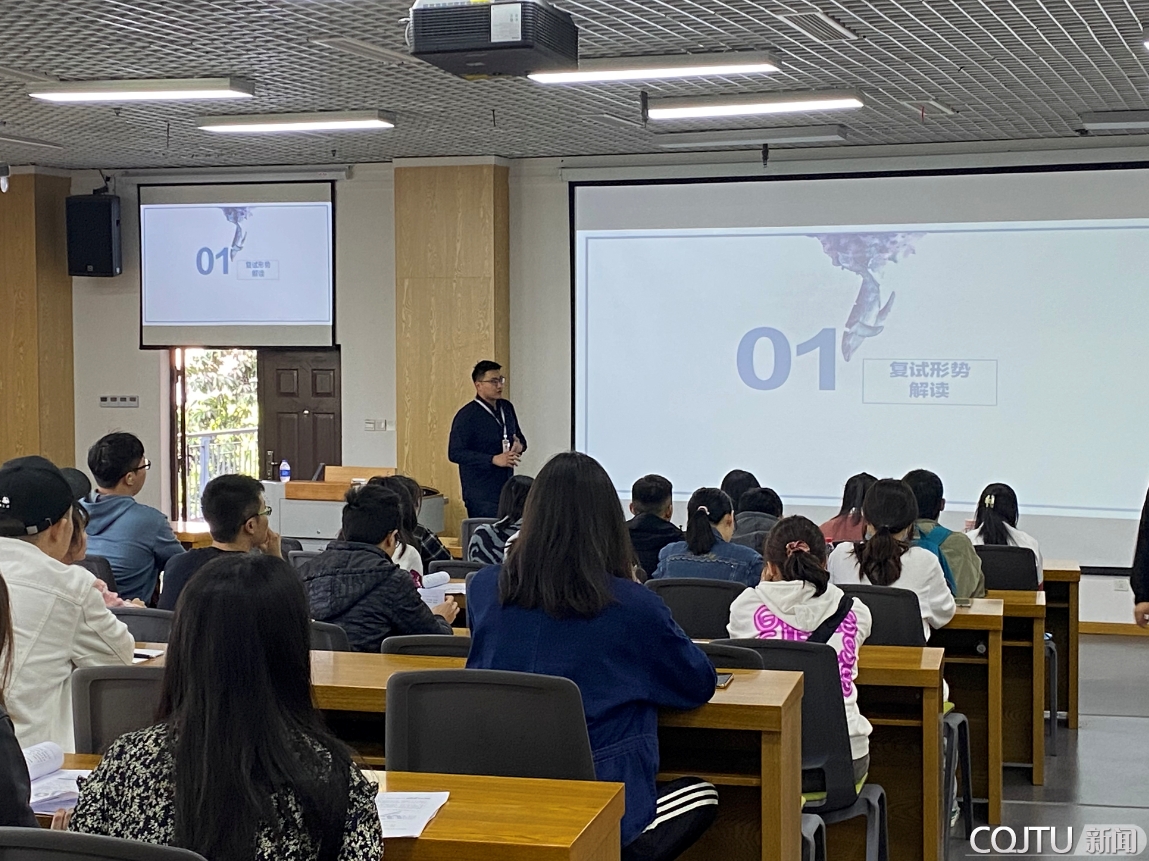 为助力suncitygroup太阳新城2021届考研学子顺利通过考研复试、有针对性地进行调剂,3月24日下午,公司特邀中公教育考研复试指导老师吉万达于30401教室为同学们做“考研复试与调剂”专题指导,公司2021届毕业班辅导员、考研初试达国家线同学参加了本次活动。