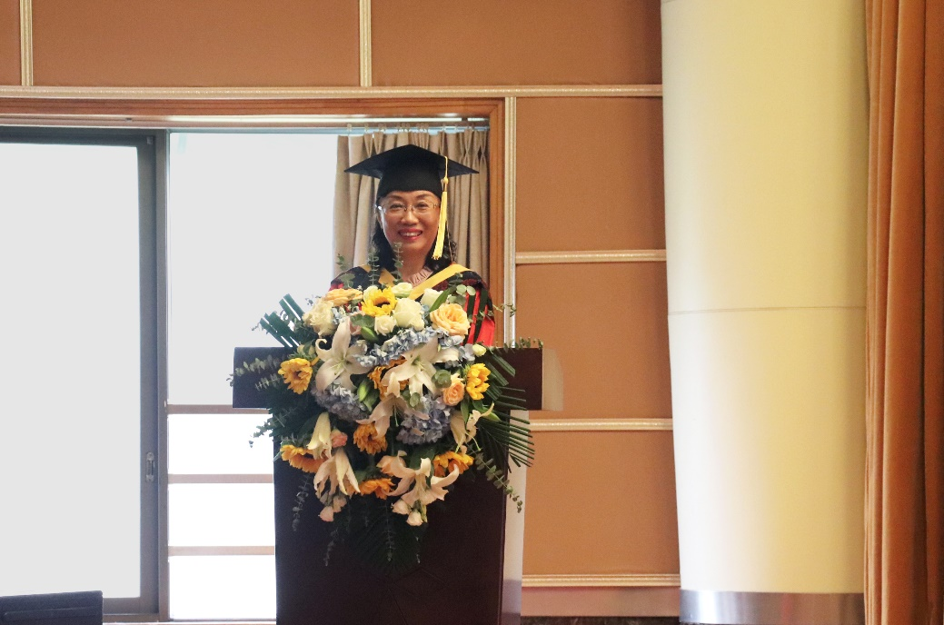 经理李红镝热情致辞,对毕业生圆满完成学业表示热烈祝贺,并提出三点期许:一是能够成为一个敢于担当,敢于挑战的人;二是能够保持乐观积极向上的精神,勇于面对生活中的困难,不轻言放弃;三是能够心怀祖国,志向远大,在今后的生活与工作中将个人理想奋斗融入祖国建设。