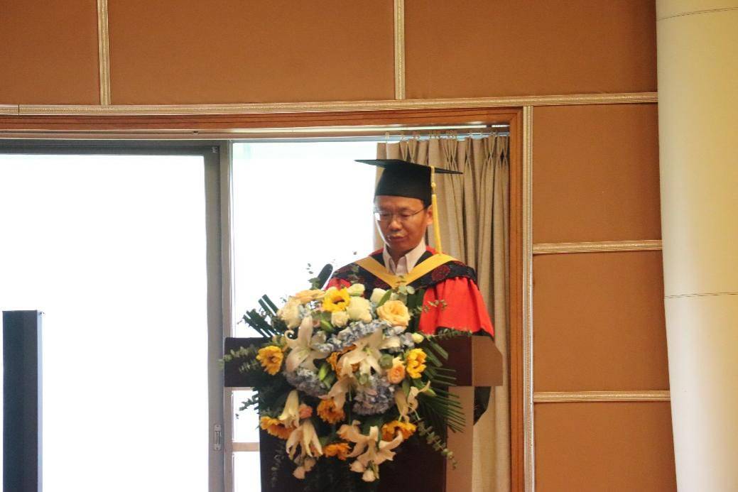 毕业典礼暨授位仪式在国歌声中开始。副经理肖伟宣读2021届硕士学位授予决定;副经理石超峰宣读2021届学士学位授予决定。