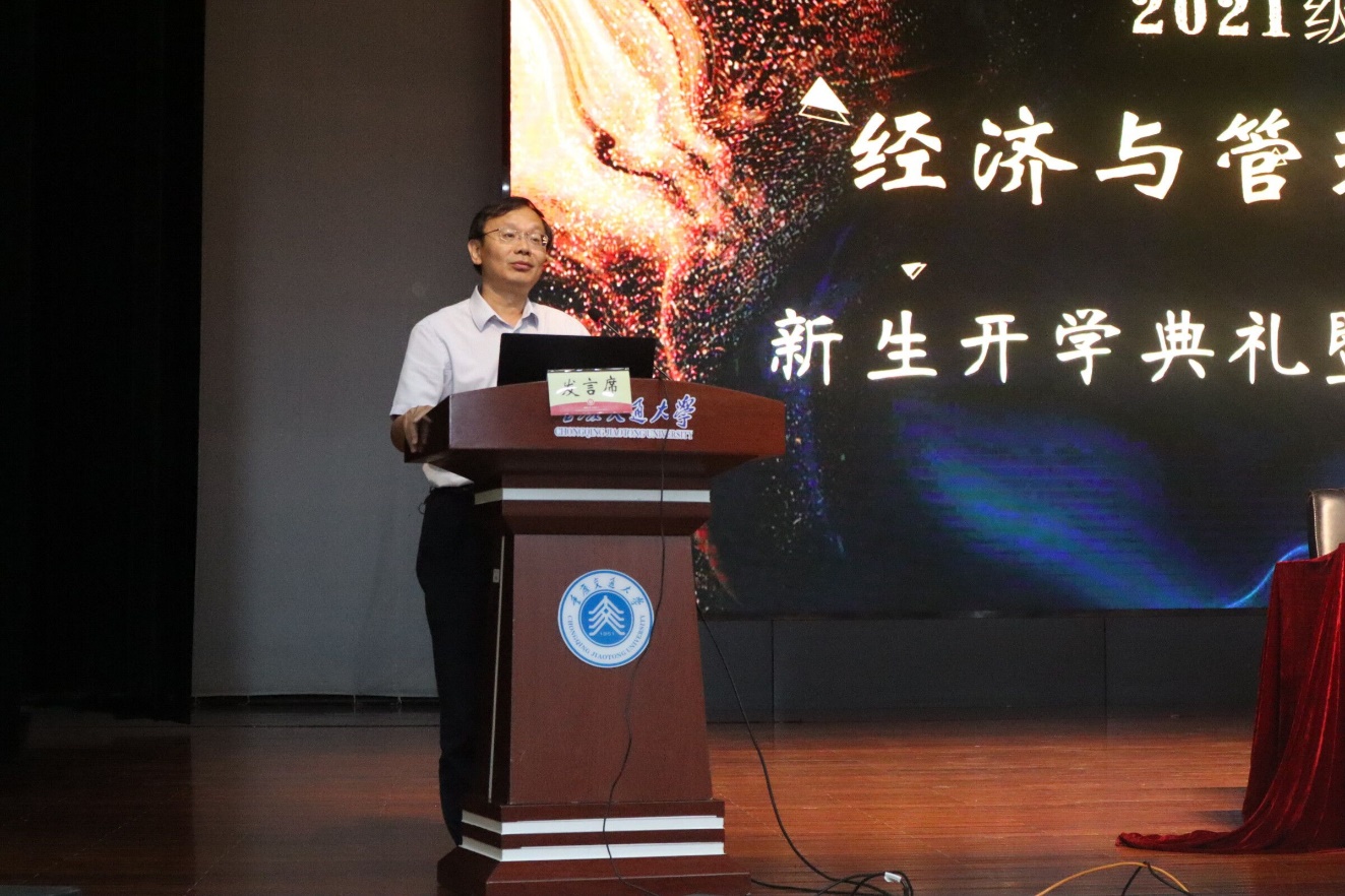经济与管理公司党委书记魏铜铃以一个新生家长的身份欢迎新同学的到来并结合本科生成长实际,结合习近平总书记在清华大学视察时的讲话精神为指引,希望同学们明确自己的目标,知道如何读过老员工活,怎么学会做人并寄语同学们:行者常至,为者长存。