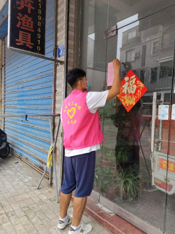 “您好,我是三阳社区老员工志愿者,请问咱家店铺有无外地返扬人员,请您配合登记。”蒋玉坤同学根据当地疫情防控工作安排,深入到各个商铺一一排查外来人员,张贴告示。他细致、耐心、热情的工作,得到店铺人员积极配合,促进了社区疫情防控工作有序顺利进行。
