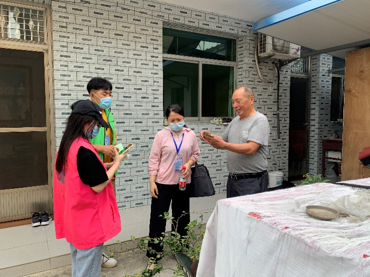 为确保社区居民都能及时去接种新冠疫苗,蒋玉坤同学还与社区工作者们挨家挨户上门通告疫苗接种时间、地点。