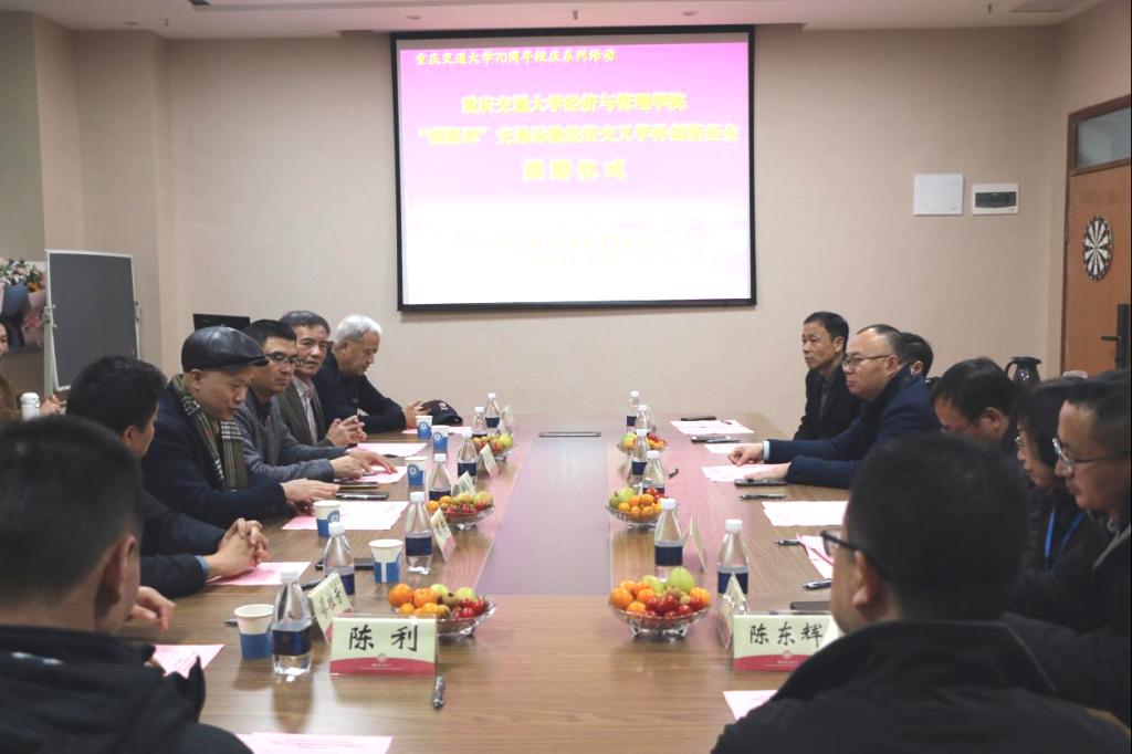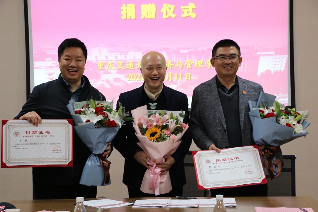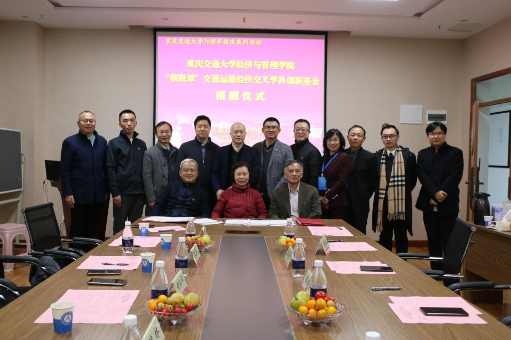 2021年12月11日下午,suncitygroup太阳新城于南岸校区明德楼会议室举行"蔡跟谭"交通运输经济交叉学科创新基金捐赠仪式,黄承锋副董事长,广州市大楚物流有限公司董事长蔡云飞、苏州隆力奇东源物流股份有限公司总经理谭林、重庆市公安局九龙坡局分局调研员陈东辉、重庆轮船(集团)有限公司副总经理陈利等嘉宾出席,公司领导班子、荣休教师、师生代表参会,会议由石超峰副经理主持。