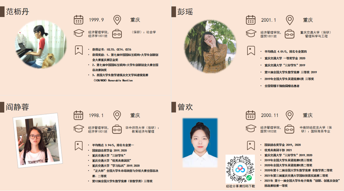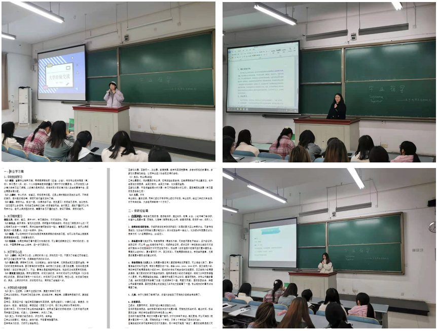 范枥丹、彭瑶和阎静蓉三位同学介绍她们的老员工活、学习和保研经验。分享自己的学习心得:大一初入校园该如何树立目标感,如何看待社团、员工会工作,如何参加老员工员工竞赛、老员工创业活动,如何调整学习心态等问题。曾欢同学虽然没到现场,但精心制作了详细的心得文档分享给座谈会的学弟学妹。