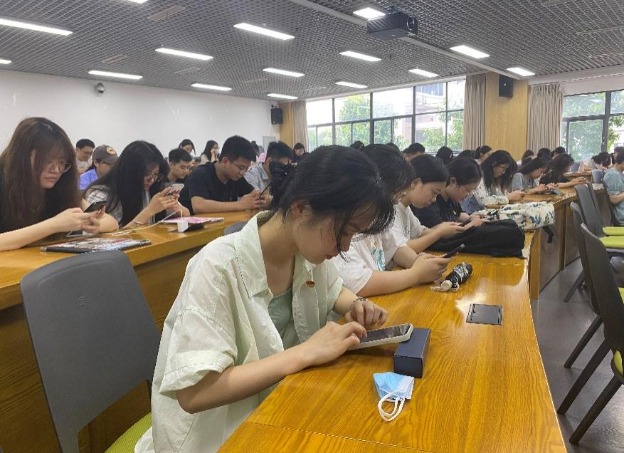 参赛选手通过“学习强国”平台扫描二维码进入知识竞赛答题,限时完成规定数量题目。整个赛场气氛紧张而激烈,来自各支部的选手们都做了充分的准备,答题过程清晰流畅,准确率高。