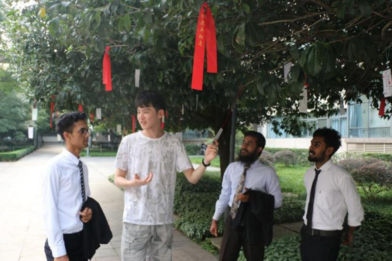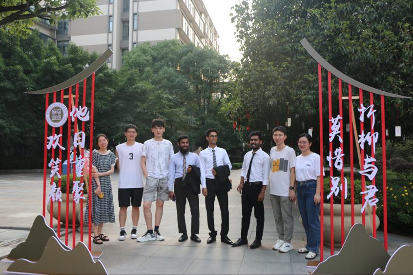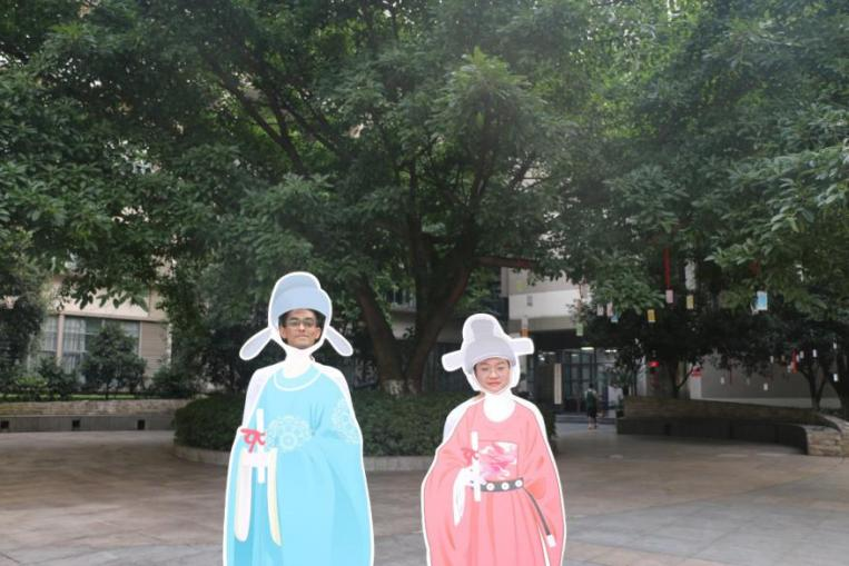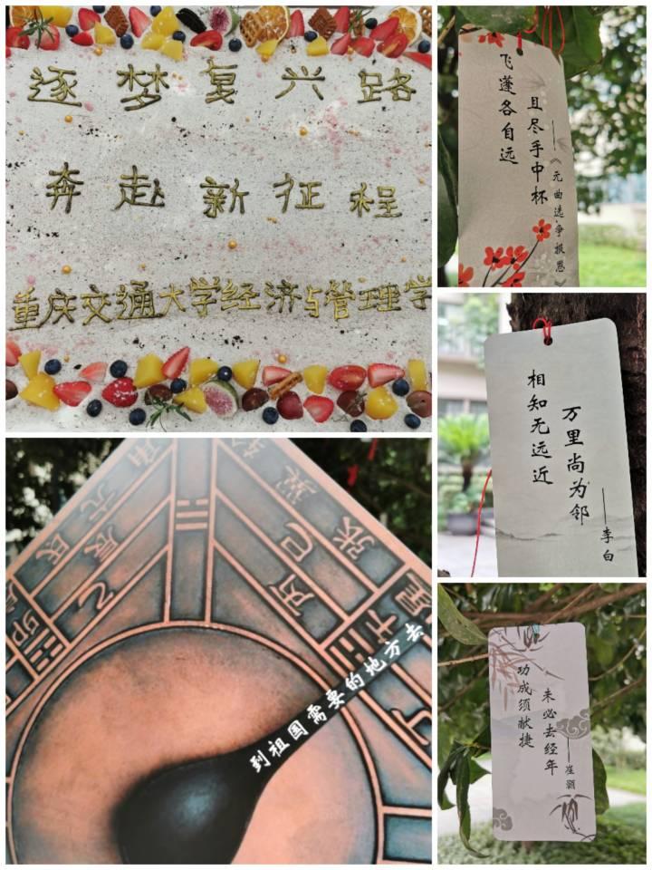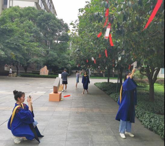suncitygroup太阳新城门前摆放的罗盘、天平、典籍等分别代表各专业内涵,寓意福智圆满;矗立道路旁的古风人行立牌时刻提醒毕业生不忘古人流传的美德;满载祝愿的红丝带和风铃随风摇曳,用诗句表达无声的不舍之情。
