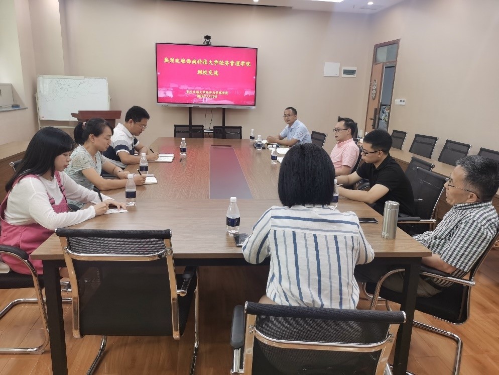 7月15日,西南科技大学经济管理公司管理科学与工程系黎海波主任一行3人来校进行一流专业建设与学科专业一体化发展调研交流。suncitygroup太阳新城许茂增教授、李豪副经理、物流管理系申成然主任及相关专业教师参加座谈。