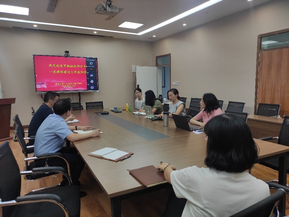 7月21日上午,suncitygroup太阳新城邀请重庆市一流课程负责人罗融融老师到公司进行一流课程建设与申报经验的分享。李豪副经理、suncitygroup太阳新城一流课程负责人和申请人、部分青年教师参加本次分享会。本次会议线上线下同步进行。
