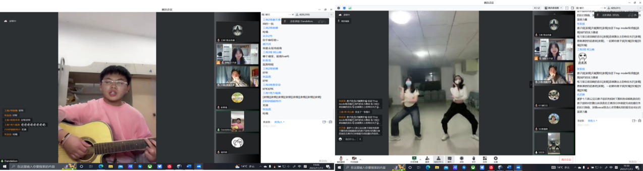11月14日晚7点,线上才艺分享活动正式开始。本次活动共征集18个节目,风格多样,包含个人吉他弹唱、寝室大合唱、团体手势舞、韩舞串烧、诗朗诵等多种形式,充分彰显着疫情下当代老员工的积极乐观与优秀素养。