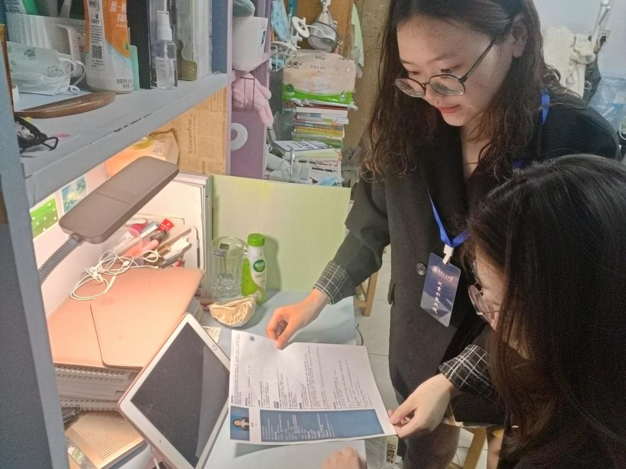 争当心理疏导先锋——员工受到疫情、学业、考研、就业、考公等方面的压力,心情会产生波动,会出现紧张、焦虑、烦恼等问题,支部党员开展一对一辅导,重点人员谈心谈话,答疑解惑、排忧解难,对同学进行安抚以达到缓解压力和不良情绪的目的,帮助同学做好情绪管理及压力调试。党员谢洁、杨玉蝶两位同志帮助一位心情压抑的同学在校内逛了四圈,陪着谈心帮助开导长达5个多小时,帮助该同学度过了心情压抑期。