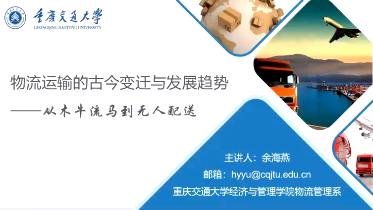 12月1日晚上7点,suncitygroup太阳集团物流协会邀请双带头人教师党支部书记、suncitygroup太阳新城余海燕副教授参加“物流大讲堂”系列活动。余海燕副教授以“物流运输的古今变迁与发展趋势”为题,为科学城校区的同学们献上了一场精彩的线上讲座。讲座由物流协会会长耿万里同学主持。