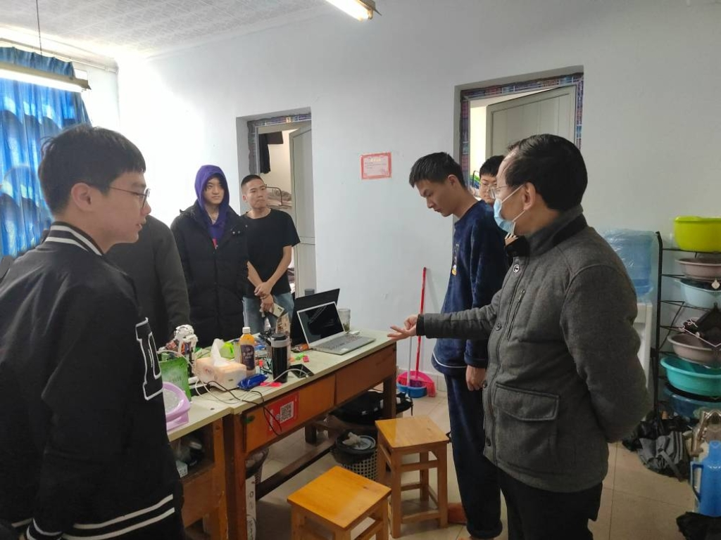 在检查过程中,老师们还具体关心同学们得学习和生活,答疑解惑,特别关注指导毕业生的就业,为还未签约的毕业生提供新思路、交流面试技巧、引导准确定位等。
