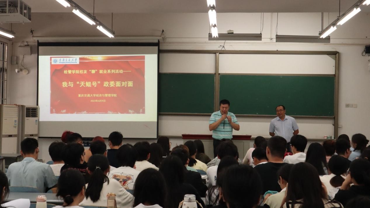 6月9日上午,经管员工“聊”就业座谈会在科学城校区A01124教室进行,线上线下300余名员工参加。中交天鲲号党支部书记、政委霍宗杰作主题发言,围绕“天鲲号”转战海内外、深度服务一带一路等,讲述如何辩证认识“就业难”、如何应对就业市场竞争等,鼓励学子们要艰苦奋斗、砥砺前行。
