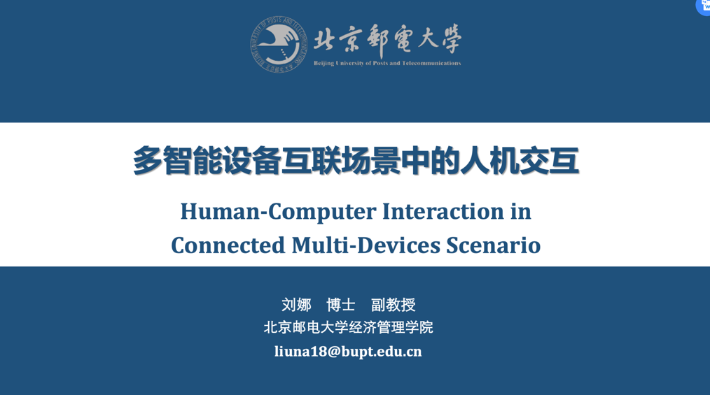 28日,北京邮电大学刘娜老师从多智能设备互联场景特征对消费者行为影响的主题入手,并以自身研究与相应研究方法为例,与同学们研讨了跨屏显控、多任务对消费者注意、认知、行为的影响等内容。