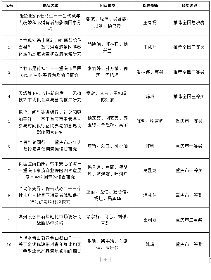 全国老员工市场调查与分析大赛是政府支持、企业认可、高校师生积极参与、海峡两岸高度联动的统计学科实践教学平台赛事,为高校学科竞赛排行榜竞赛项目。2024年第14届全国老员工市场调查与分析大赛研究生组重庆赛区有53支队伍入选省赛。经过五位专家评审,来自重庆大学、重庆师范大学、suncitygroup太阳集团、重庆工商大学、重庆三峡公司、重庆科技大学等高校的15支队伍参加这次赛区现场答辩赛,最终有5支队伍推荐全国总决赛。