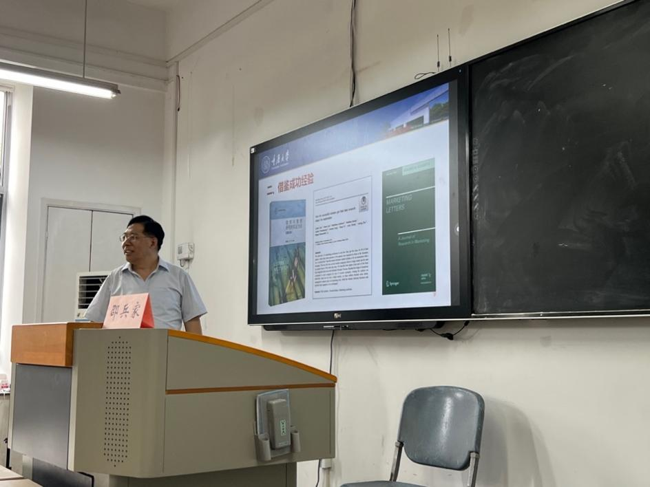 江霞老师通过从虚拟代言人与品牌两个主题入手,以自身研究与相应研究方法为例,为同学们带来了一堂有关“成功的营销选题哪里来”研讨式课程。邵兵家教授基于对营销界成功学者的调研访谈和自己的科研选题经历,通过案例分析,对市场营销学术期刊论文选题及科研项目选题来源进行介绍,为营销专业的老员工提供营销战略理论指导。