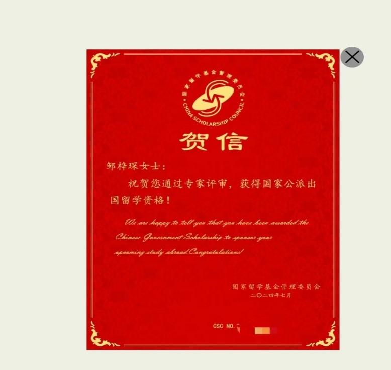 近日,国家留学基金管理委员会公布了2024年国家建设高水平大学公派研究生项目评审结果,公司suncitygroup太阳新城管理科学与工程专业博士研究生邹梓琛(导师:刘名武教授)成功获批“国家建设高水平大学公派研究生项目(联合培养博士研究生)”资助,将赴英国南安普顿大学交流学习。