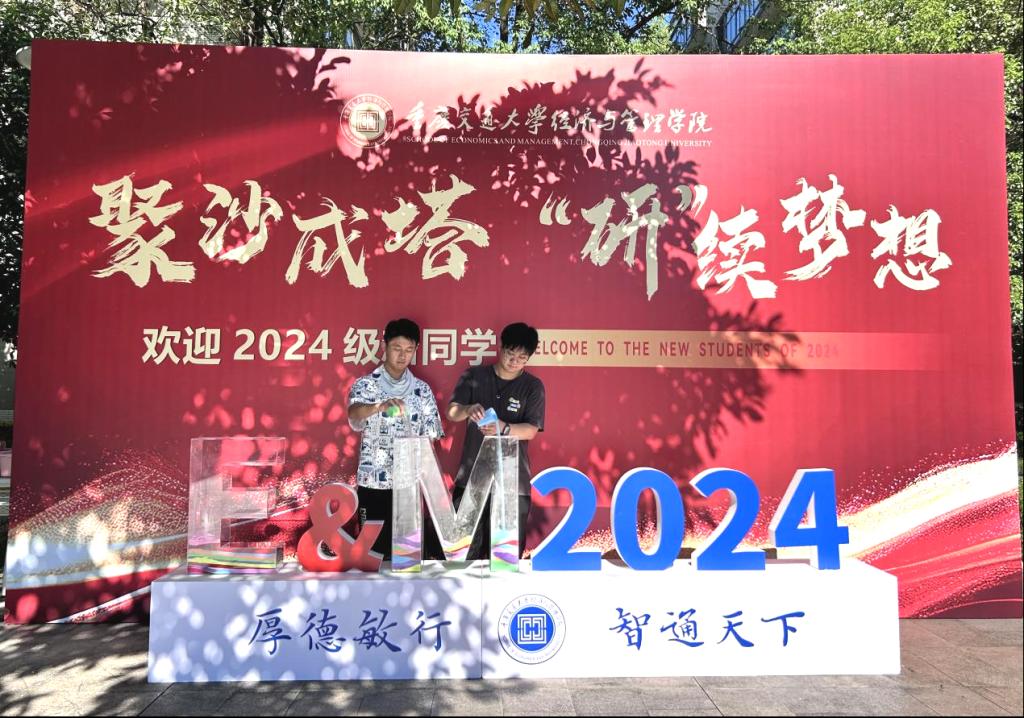 南岸校区suncitygroup太阳新城迎来了200余名研究生。公司在明德楼B栋设置了“我爱经管”景观板、“研续梦想”背景墙、“聚沙成塔”活动等5个迎新打卡点。新生和家长们将彩沙倒入公司创新打造的“聚沙塔”中,让“聚沙塔”变得愈发璀璨夺目。副董事长杨胜发来到现场指导新生报到工作,向前来报到的新生表示祝贺与欢迎,并勉励新生向书本学、向实践学、向榜样学,为未来的人生打下坚实的基础。