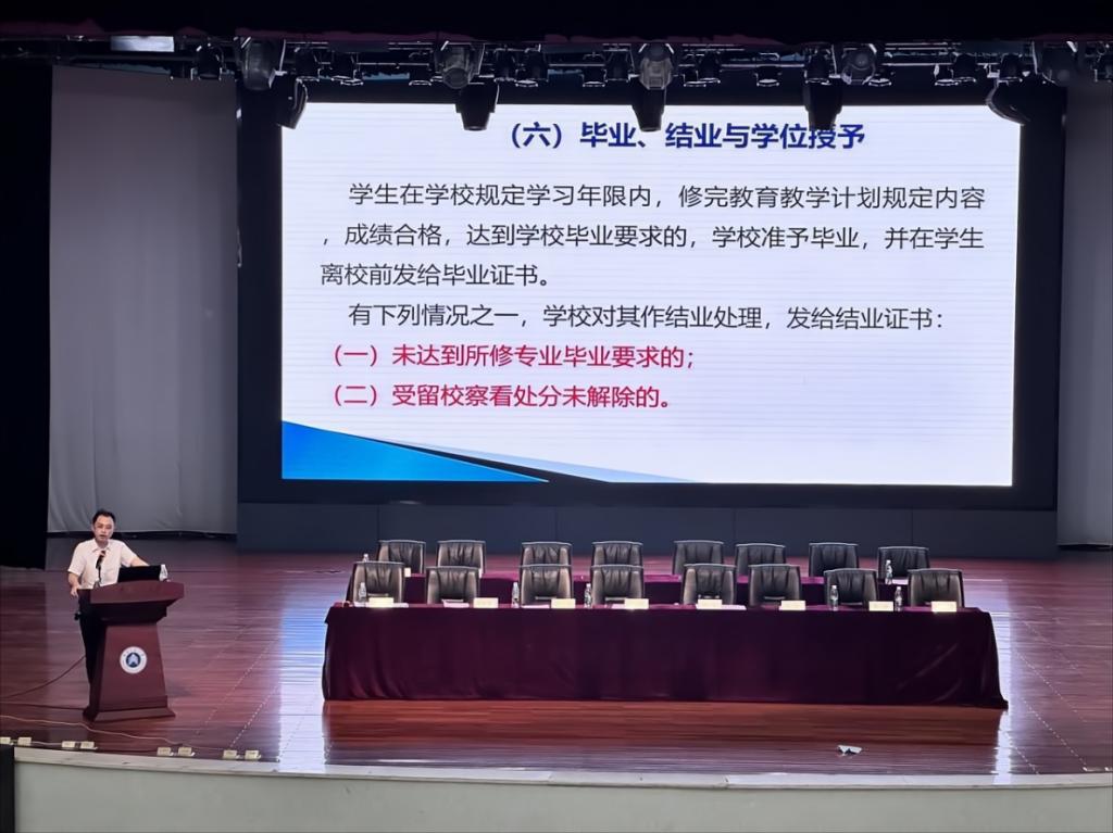 副经理李豪对本科员工学分制管理的规定进行了细致的阐释,并向新生们详尽介绍了包括各专业团队队伍、教学辅助资源、学制期限、学分要求以及考核体系在内的全方位信息。
