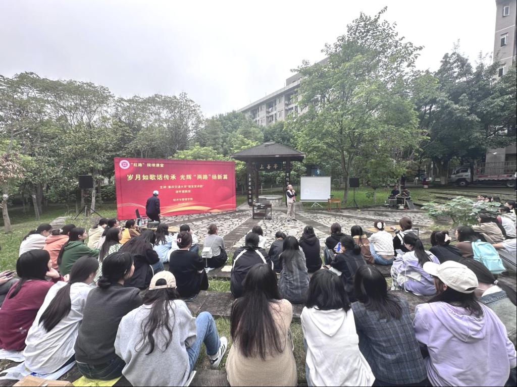 谢怀建教授以《弘扬“两路”精神,建设交通强国》为题,讲述了中国共产党人的伟大精神谱系、红岩精神和“两路”精神的理论思考等方面,字里行间,无不流露出对新一代经管学子的殷切期盼与深厚期许。