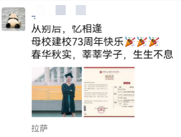 毕业多年的员工们通过网络留言,回忆着往昔的校园时光,分享着离校后的人生经历与职业发展的感悟。那些曾经在校园里度过的青涩岁月,成为了他们心中最珍贵的回忆,而母校给予的知识与力量,则助力他们在各自的领域中继续砥砺前行。一句句真挚的祝福,饱含着员工们对母校的深深眷恋与感恩之情,也激励着在校的学弟学妹们努力奋进。