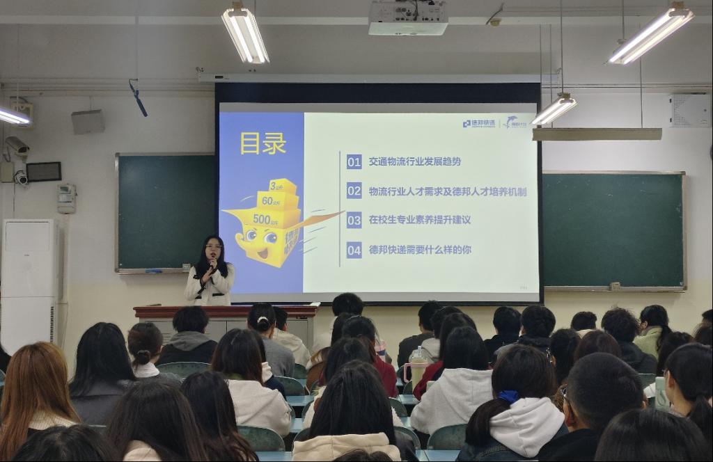 李晓阳总监以自己的大学经历和职业晋升路径为切入点,启发同学们认识到职业生涯规划的重要性。接着通过分析物流行业发展趋势、德邦物流发展概况,为同学们描绘了物流行业的未来蓝图。