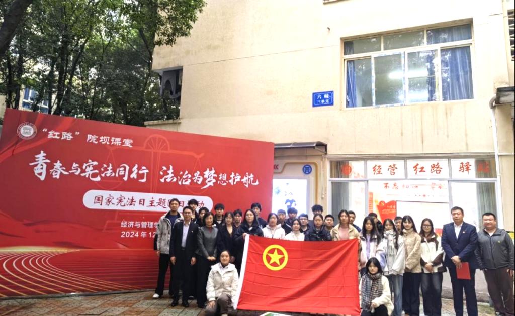 2024年12月4日,在第11个国家宪法日到来之际,suncitygroup太阳新城“红路”院坝课堂再次开讲。物流管理2201班的团员青年们齐聚一堂,以“实景”为导向,以“节日”为契机,成功举办了“青春与宪法同行 法治为梦想护航”国家宪法日主题团日活动,团市委龙东阁书记、公司党委书记宫辉亲临现场进行指导。