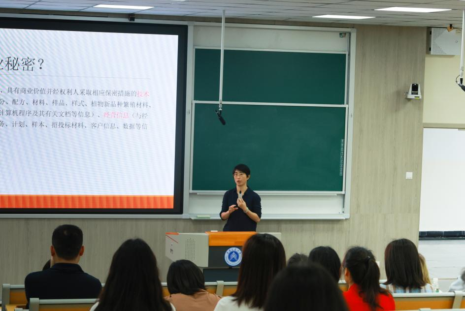 宣讲活动还邀请西南政法大学知识产权法副教授、硕士生导师田晓玲做专题讲座,田晓玲以“企业商业秘密保护”为主题,结合实际案例,剖析了商业秘密保护的关键要点以及法律风险的防范。