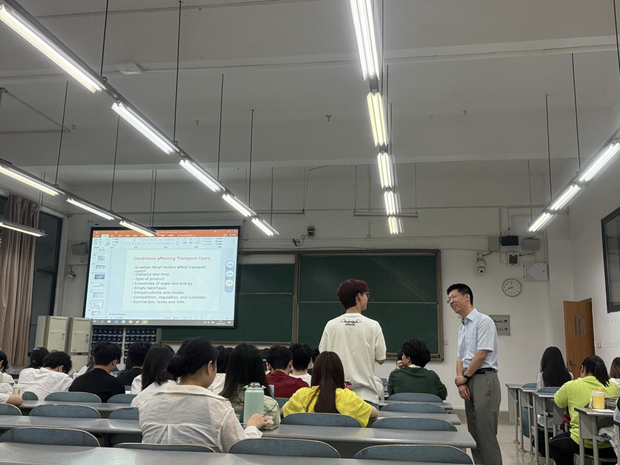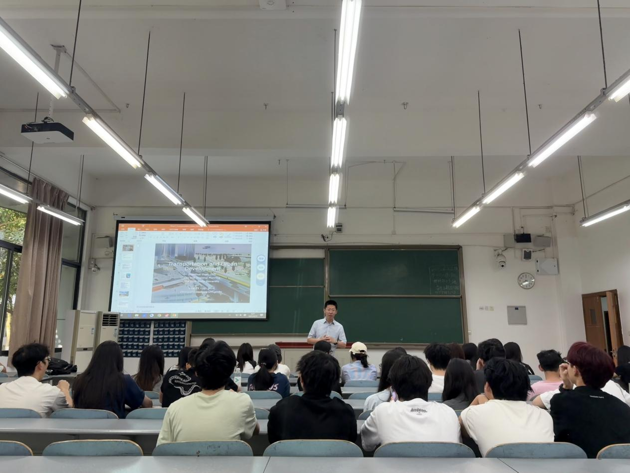课堂上,陈振华教授以轻松活泼的英文自我介绍环节开场,帮助同学们快速适应全英文教学环境,随后围绕“Transportation and the Spatial Structure”“Transportation, Economy and Society”“Urban Transportation”等核心主题展开系统讲解。在活跃的课堂氛围中,同学们不仅提升了专业素养,也锻炼了英语交流能力。