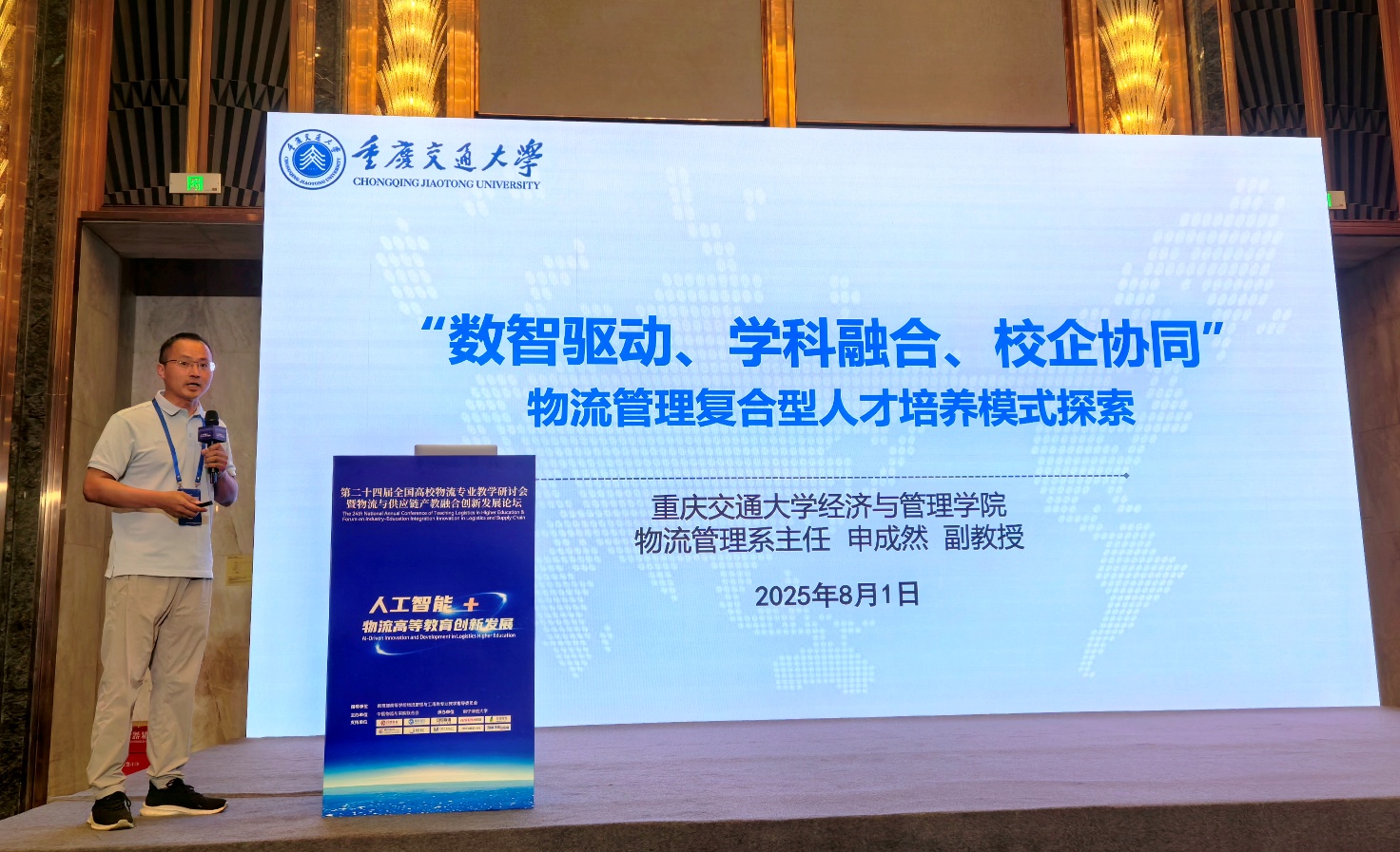 物流管理系主任申成然副教授在分论坛上以“数智驱动、学科融合、校企协同-物流管理复合型人才培养模式探索”为题做了专题报告,介绍了公司物流管理专业建设取得的成果,并分享了专业数智化转型、“物流管理+人工智能”双学位项目、低空物流实验班设置的经验,引起与会专家的广泛兴趣和热烈讨论。