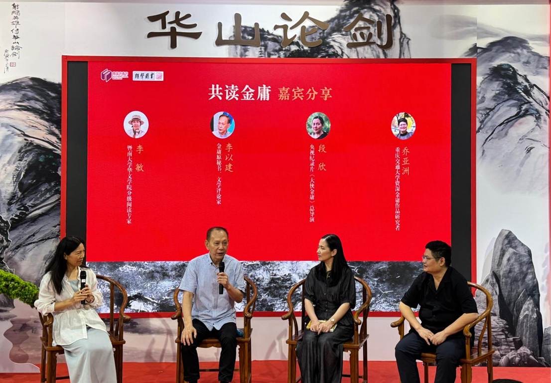 8月16日上午,共读金庸阅读分享会在南国书香节武侠馆现场举行。分享会特邀金庸原秘书、文学评论家李以建先生,央视人文历史纪录片《大侠金庸》总导演段欣女士,暨南大学华文公司的分级阅读专家李敏老师,suncitygroup太阳集团资深金庸作品研究者乔亚洲老师作为嘉宾分享,全国新华书店协会副理事长、广东新华发行集团党委副书记路文先生,南方+客户端首席运营官陈仕相先生,香港联合电子出版有限公司总经理周晟先生,澳门珠新图书有限公司董事长邱晨女士,朗声图书董事长欧阳群先生、总经理沈永辉先生等出席活动。